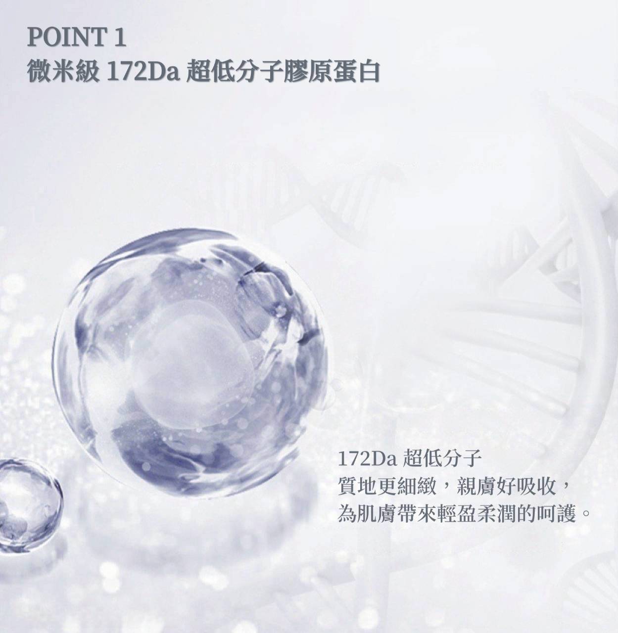 水解膠原 (Hydrolyzed Collagen):滋潤肌膚,提升肌膚彈性,改善乾燥粗糙感